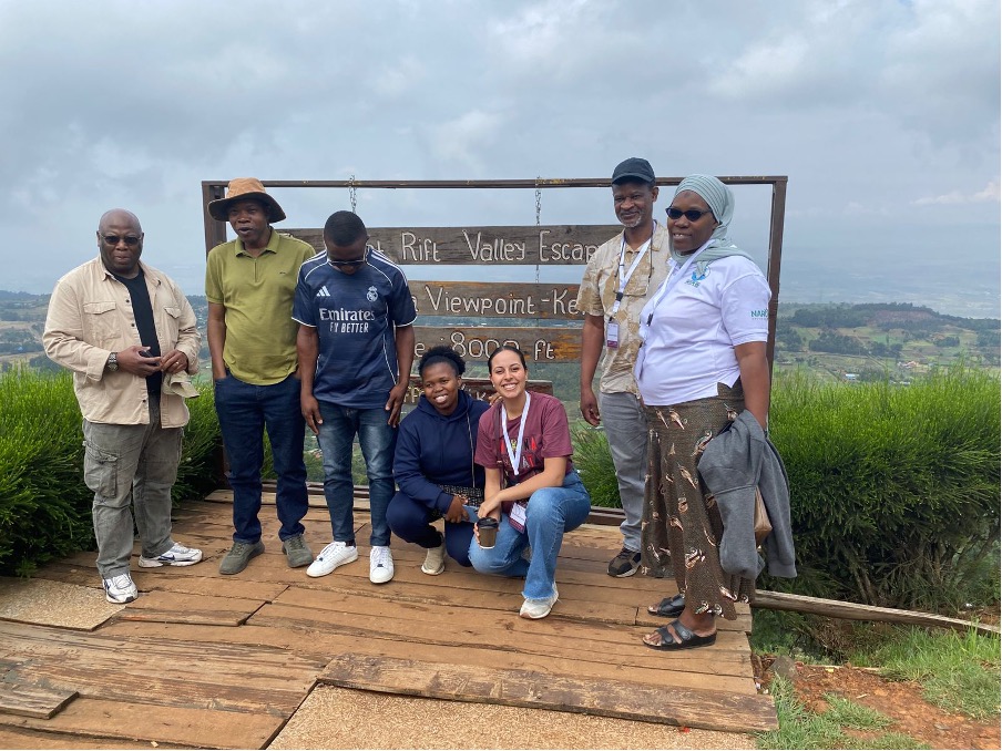 Dr Matika (second from right) with several participants on the CTLGH training course, and Professor Mizeck Chagunda, Director of CTLGH (first left), at the viewpoint for the Great Rift Valley Escarpments in Kenya, during a day excursion to the National Dairy Breeding Centre, Naivasha.